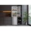 Встраиваемые холодильники монтируются в нишу или колонну. Передняя их часть закрывается декоративным мебельным фасадом и снаружи не отличается от дверцы обычного кухонного шкафа, так что их не нужно подбирать под интерьер помещения. Объем этих холодильников, как правило, несколько меньше, чем у отдельностоящих, так как при встраивании необходимо оставлять свободное пространство для вентиляции. Они отличаются меньшим уровнем шума, а также лучше держат холод и отличаются большей экономичностью из-за дополнительного слоя изоляции. Ассортимент этих холодильников не так велик, как у отдельно стоящих, установка более трудоемкая, а стоимость обычно несколько выше.