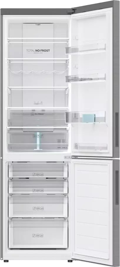 No Frost (Total No Frost, Frost Free): вентилятор обеспечивает циркуляцию охлажденного воздуха, благодаря чему лед не нарастает на стенке, а концентрируется только на скрытом внутри холодильника испарителе. Талая вода собирается в специальной емкости и испаряется. Такой холодильник не нужно размораживать – это экономит время и позволяет не останавливать прибор. Благодаря этим плюсам в современных моделях No Frost – самая распространенная система.