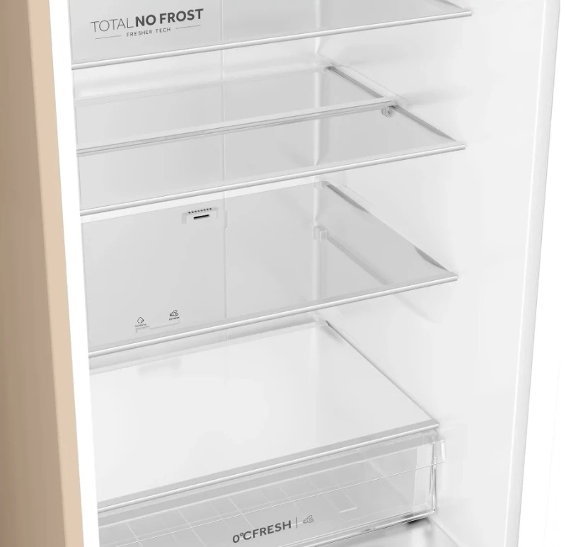 No Frost (Total No Frost, Frost Free): вентилятор обеспечивает циркуляцию охлажденного воздуха, благодаря чему лед не нарастает на стенке, а концентрируется только на скрытом внутри холодильника испарителе. Талая вода собирается в специальной емкости и испаряется. Такой холодильник не нужно размораживать – это экономит время и позволяет не останавливать прибор. Благодаря этим плюсам в современных моделях No Frost – самая распространенная система.