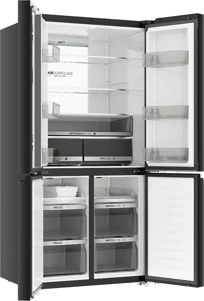 Четырех-, пяти- и шестикамерные модели включают, кроме морозильной и холодильной камер, отдельную зону свежести (иногда состоящую из сухого и влажного отсеков) и специальный отсек для ледогенератора, а в некоторых случаях еще и винное отделение.