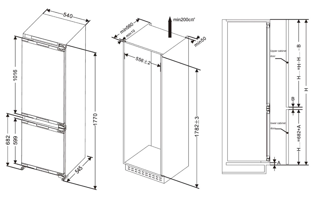 - Габариты ниши для встраивания (ВхШхГ): 177.6-178.2х56-57х57 см
