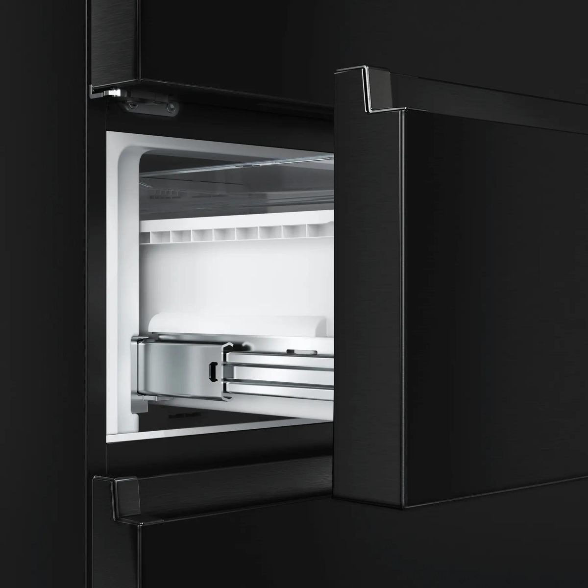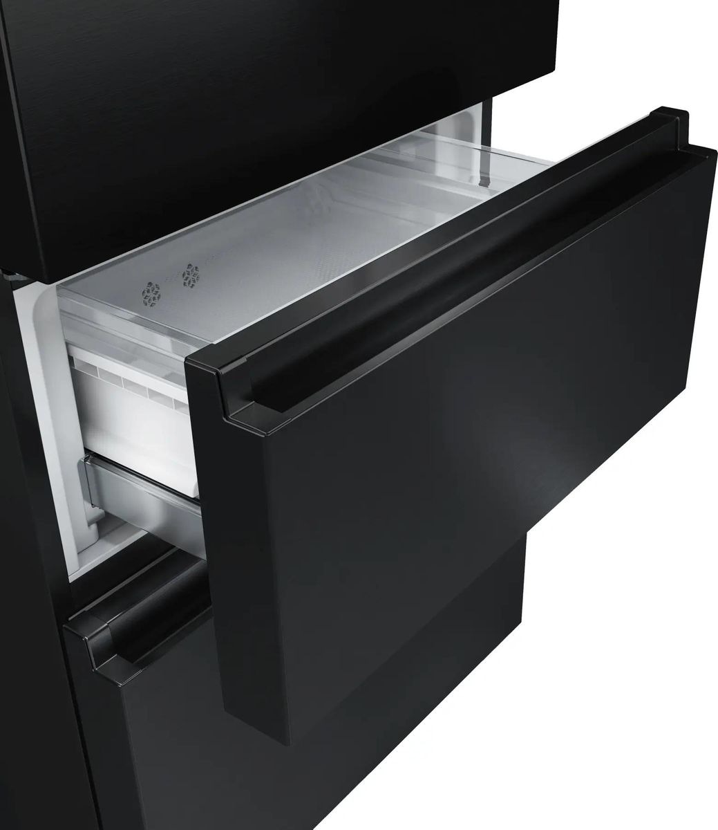 Трехкамерные модели выпускаются в нескольких вариантах. В некоторых случаях в качестве третьей камеры поступает так называемая зона свежести — отделение, где поддерживается температура около 0 градусов. В другом варианте подобные модели имеют морозильную камеру, состоящую из двух выдвижных ящиков.