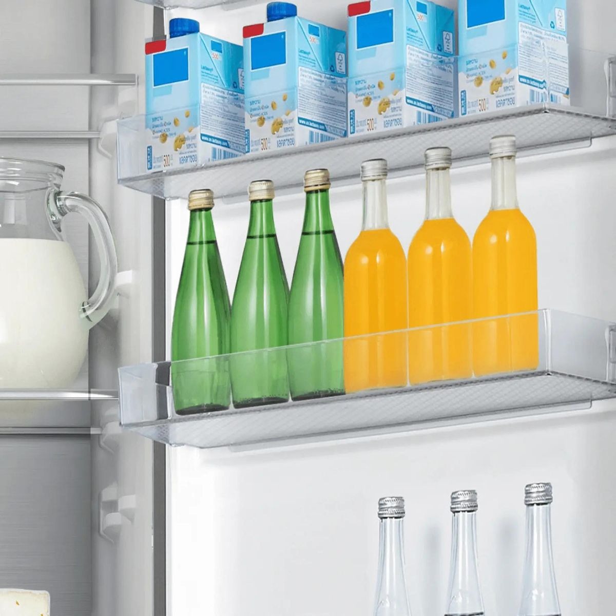 Полки в холодильнике позволяют рационально организовать хранение продуктов, обеспечить легкий поиск и доступ к ним. Основные материалы для изготовления полок — это пластик, стекло и металл. Часть полок можно переставлять по высоте или складывать вдвое или втрое.