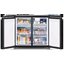 Отдельно стоящая модель с четырьмя распашными дверцами French Door имеет общий объем 569 литров. Инверторный компрессор гарантирует устойчивую работу без стабилизатора напряжения и низкий уровень шума. Система Dual Fan Cooling равномерно распределяет охлажденный воздух с помощью двух вентиляторов. Большая сенсорная панель управления на дверце позволяет наглядно и точно регулировать температуру в каждом отделении, а специальное покрытие защищает ее от отпечатков пальцев. Тройной воздушный фильтр задерживает до 90 % бактерий.