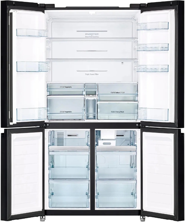 Четырех-, пяти- и шестикамерные модели включают, кроме морозильной и холодильной камер, отдельную зону свежести (иногда состоящую из сухого и влажного отсеков) и специальный отсек для ледогенератора, а в некоторых случаях еще и винное отделение.