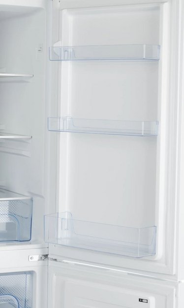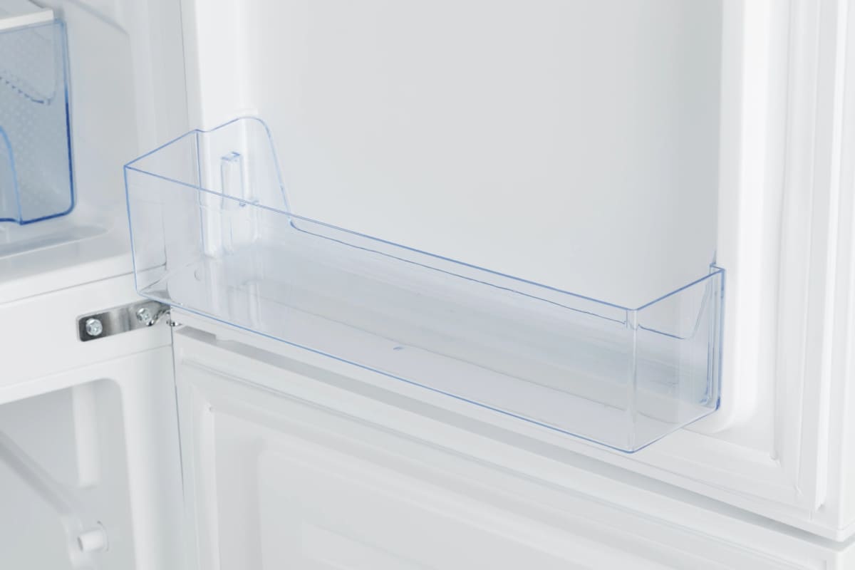 Полки на дверце наиболее подвержены механическому воздействию при открывании и особенно неосторожном закрывании дверцы, а также температурным перепадам. Особенно нестабильна температура для открытых полок. Этим объясняется выбор материала, из которого изготавливаются эти полки. В абсолютном большинстве материалом их изготовления служит пластик — прозрачный или белый экологически безопасный материал, достаточно долговечный и устойчивой к любым нагрузкам. Часть полок на дверце холодильника является съемной и крепится при помощи специальных держателей. Кроме того, полки легко регулируются по высоте.