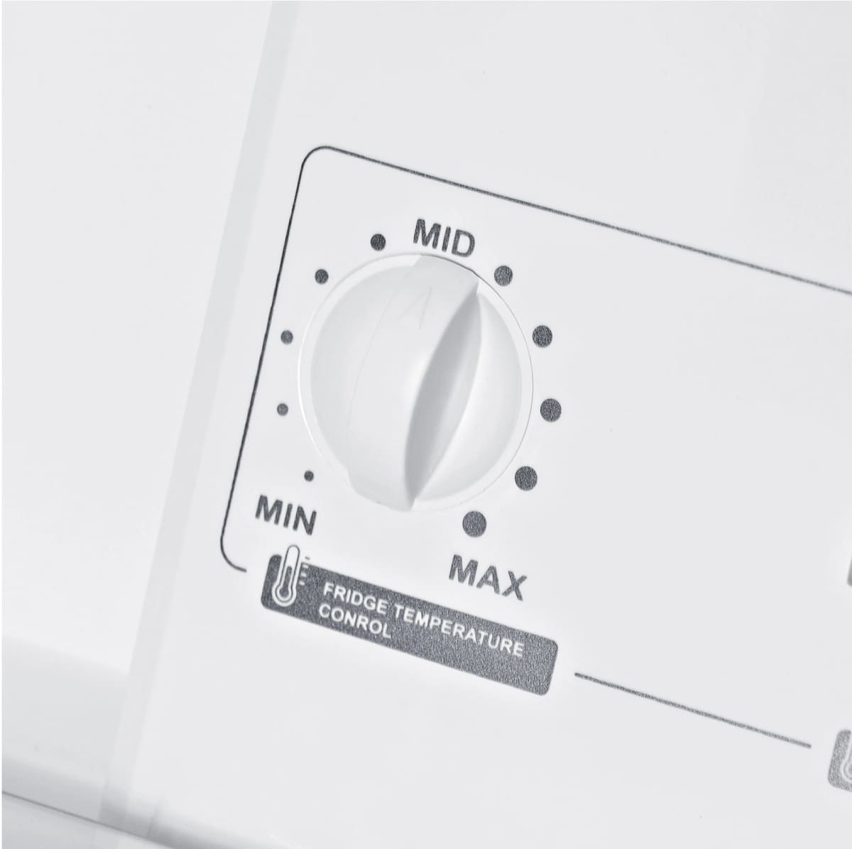 Основным элементом управления в холодильниках с механической или электромеханической системой служит поворотной переключатель с делениями. Поворотом ручки можно регулировать степень охлаждения на нескольких уровнях — от минимального до максимального. Точное значение температуры в таких устройствах установить невозможно. Кроме того, во всех холодильниках присутствует система индикации, которая действует при повышении температуры в камере выше заданного значения, а также лампочка, которая загорается при неплотно закрытой дверце.