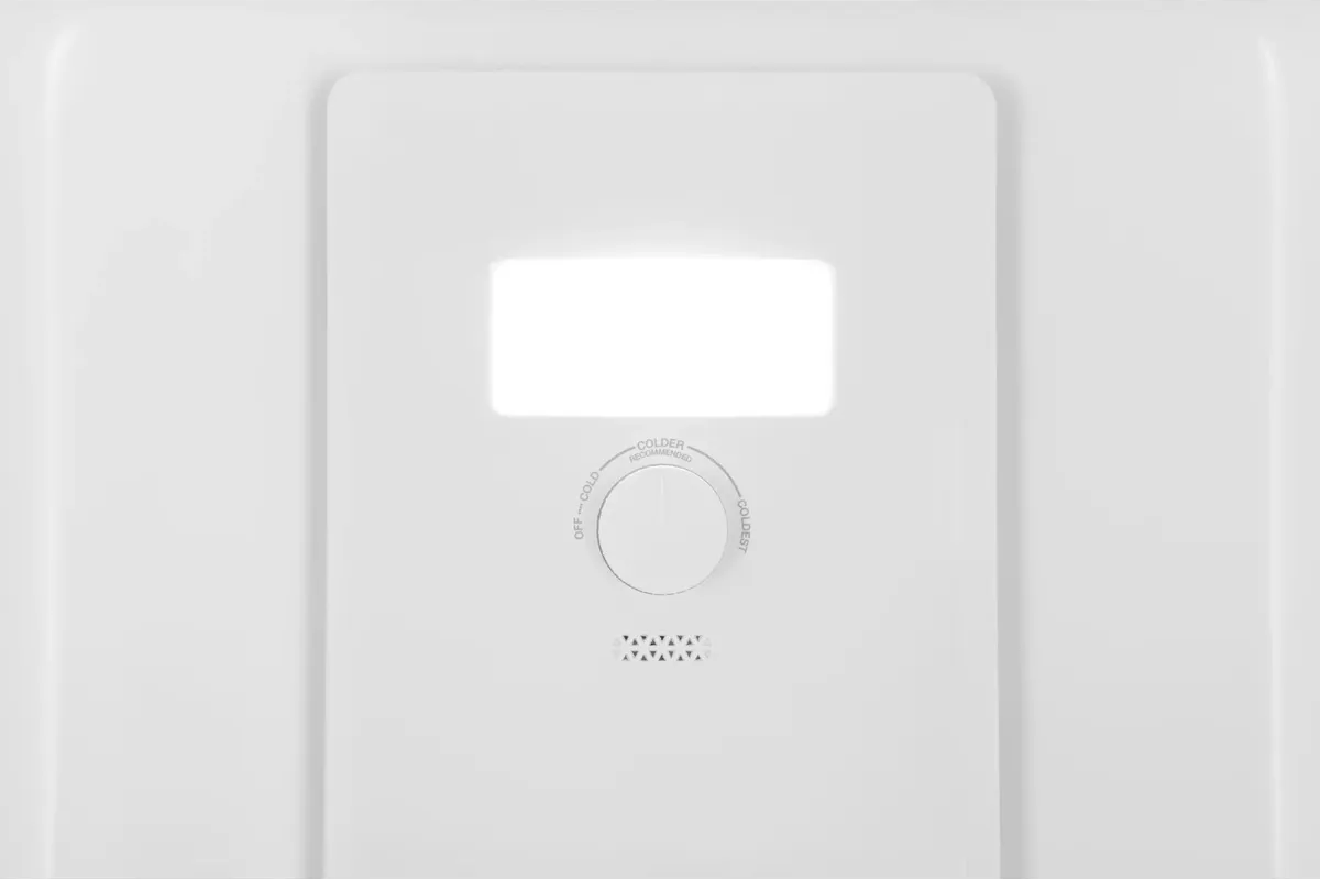 Основным элементом управления в холодильниках с механической или электромеханической системой служит поворотной переключатель с делениями. Поворотом ручки можно регулировать степень охлаждения на нескольких уровнях — от минимального до максимального. Точное значение температуры в таких устройствах установить невозможно. Кроме того, во всех холодильниках присутствует система индикации, которая действует при повышении температуры в камере выше заданного значения, а также лампочка, которая загорается при неплотно закрытой дверце.