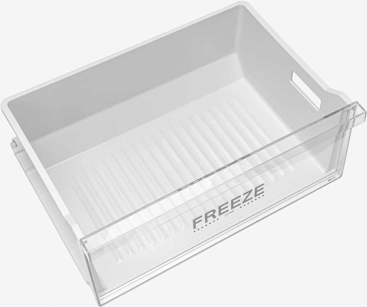 Ящики для продуктов изготавливаются либо целиком из прозрачного пластика, либо часто имеют переднюю прозрачную панель, которая обеспечивает лучший обзор. Полки в большинстве холодильников могут перемещаться по высоте, устанавливаются на специальных направляющих и без труда снимаются для очистки.