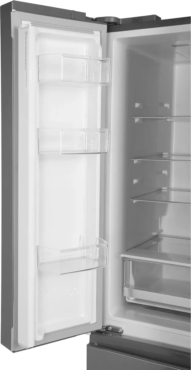 Холодильники с так называемой французской дверью или French Door также имеют распашные двери, но за ними находится не две, а одна камера. Эти двери занимают не всю высоту холодильника, а только ее часть. В нижней части подобных холодильников могут находиться либо еще две распашные двери, либо выдвижные морозильные ящики.