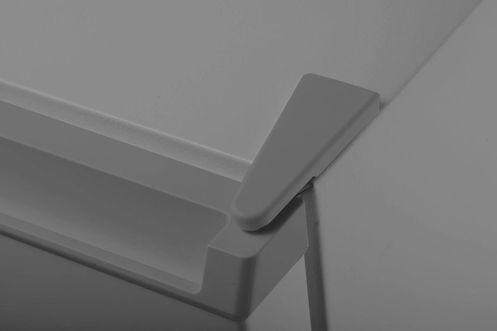 Для придания конструкции большей прочности полки могут иметь сверху металлическую окантовку или дополнительное металлическое ограждение. Такая окантовка увеличивает их прочность, так как наиболее часто повреждается именно верхняя часть бортика. В некоторых случаях применяется упругая пластиковая окантовка, которая позволяет безопасно устанавливать на полки любые бутылки, в том числе стеклянные.