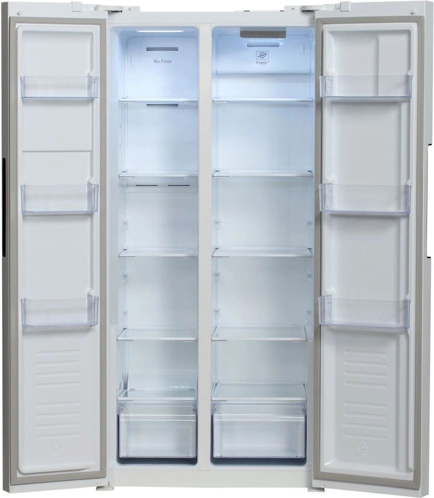 Данная модель — отдельностоящая, поэтому нужно тщательно подобрать место для ее размещения. Холодильник Side-by-Side с необычным расположением камер — сбоку друг от друга — позволяет увеличить объем продуктов для хранения. Такой вариант подходит обладателям просторной кухни, большим семьям, людям, которые запасают продукты и готовят впрок. Количество камер: 2.