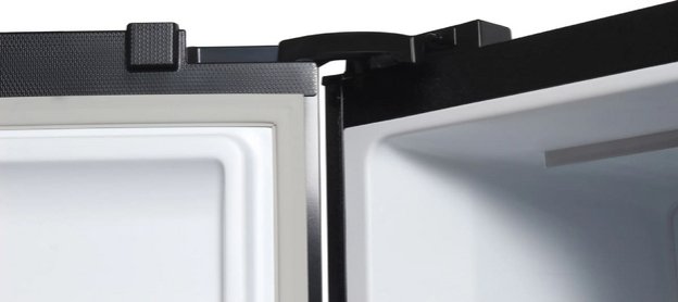 Очень редко в холодильниках можно увидеть откидную дверцу — она имеется, например, в отсеке для вакуумирования в холодильниках Hitachi.