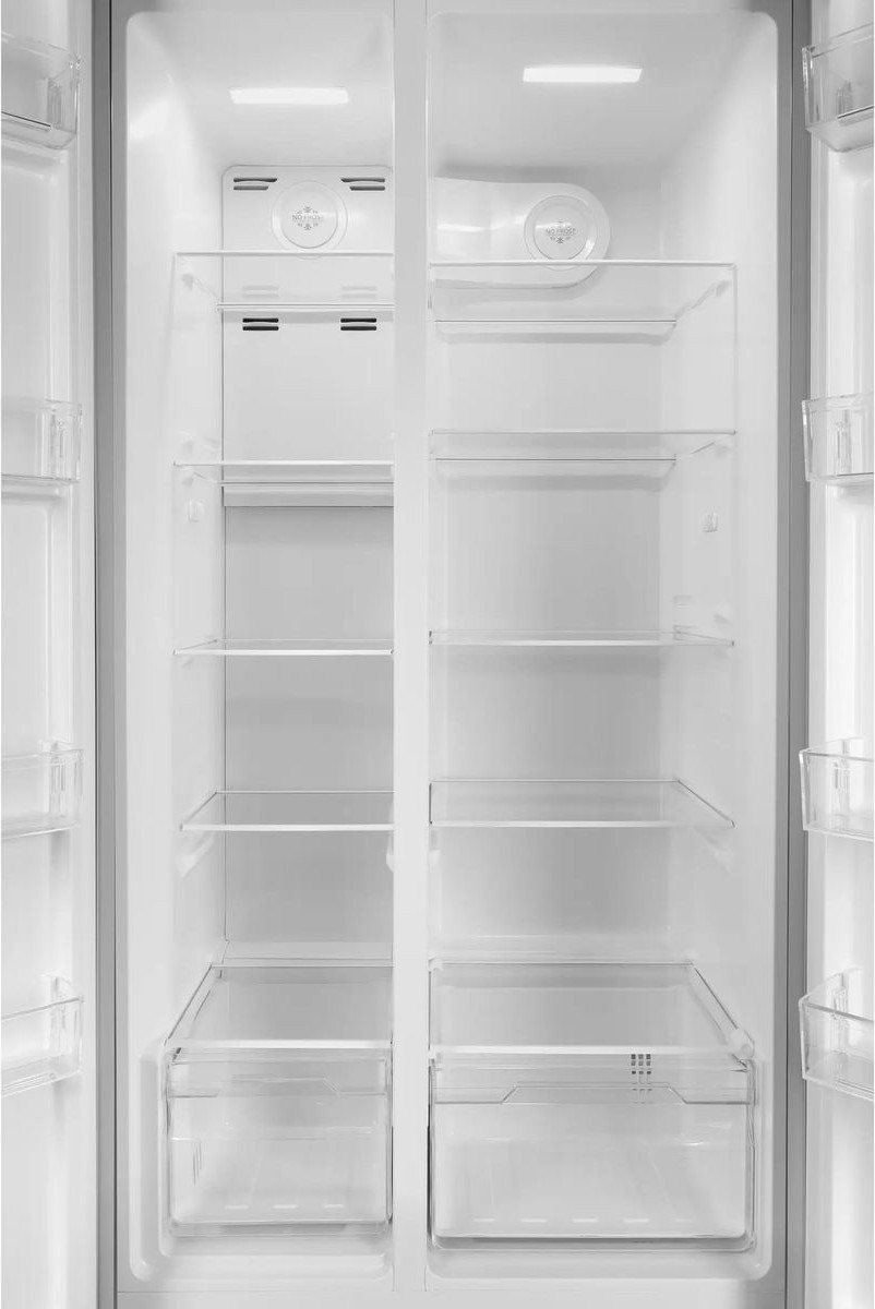 Данная модель — отдельностоящая, поэтому нужно тщательно подобрать место для ее размещения. Холодильник Side-by-Side с необычным расположением камер — сбоку друг от друга — позволяет увеличить объем продуктов для хранения. Такой вариант подходит обладателям просторной кухни, большим семьям, людям, которые запасают продукты и готовят впрок. Количество камер: 2.