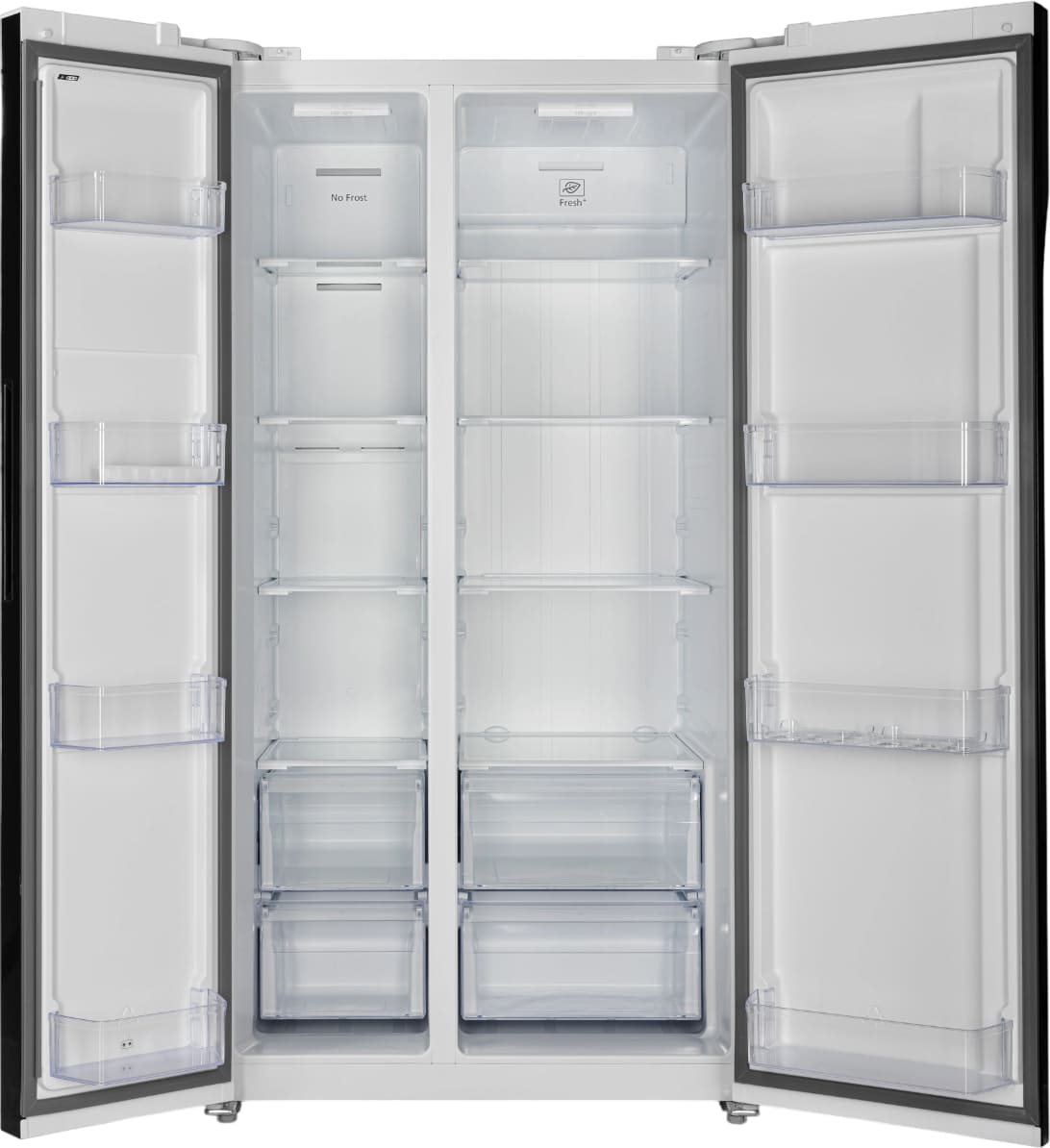 Данная модель — отдельностоящая, поэтому нужно тщательно подобрать место для ее размещения. Холодильник Side-by-Side с необычным расположением камер — сбоку друг от друга — позволяет увеличить объем продуктов для хранения. Такой вариант подходит обладателям просторной кухни, большим семьям, людям, которые запасают продукты и готовят впрок. Количество камер: 2.