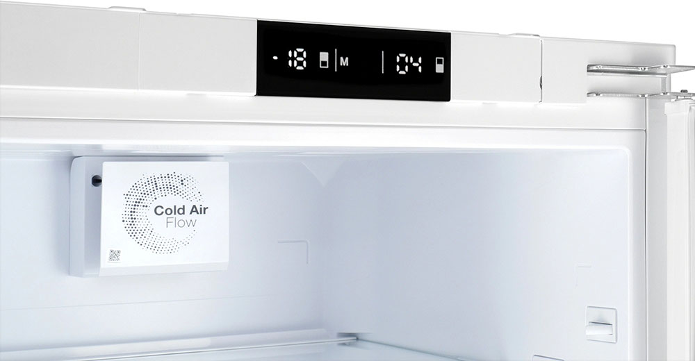 Цифровые дисплеи более простые — на них отображается температура в холодильной и морозильной камерах и выбранный режим — например, суперзамораживание, суперохлаждение, отпускной режим. Сюда же выводятся сообщения об ошибках. Текстовый дисплей дает пользователю больше возможностей и позволяет работать с меню, выбирая в нем те или иные опции.