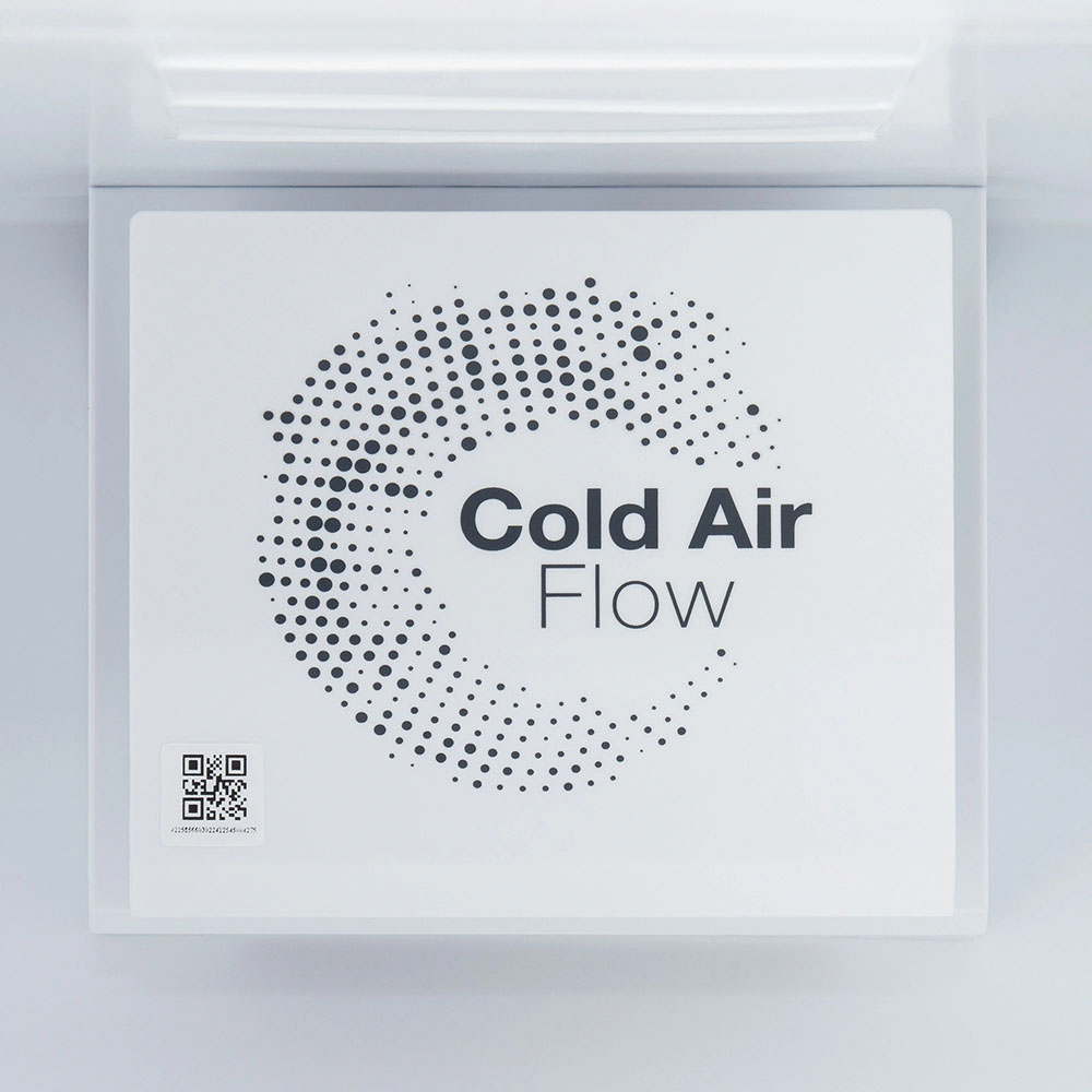 Образование льда предотвращает специальный вентилятор, который заставляет холодный воздух циркулировать по всему пространству морозильника. Лед при этом оседает не на стенках, а выводится за пределы камеры и остается на испарителе холодильника. Вентилятор работает попеременно с нагревателем, благодаря чему иней на испарителе оттаивает, а талая вода стекает в поддон, откуда испаряется естественным способом. Вопреки распространенному мнению, в морозильнике с системой No Frost продукты не заветриваются и не сохнут, а энергопотребление ненамного превышает этот показатель для обычных холодильников.
