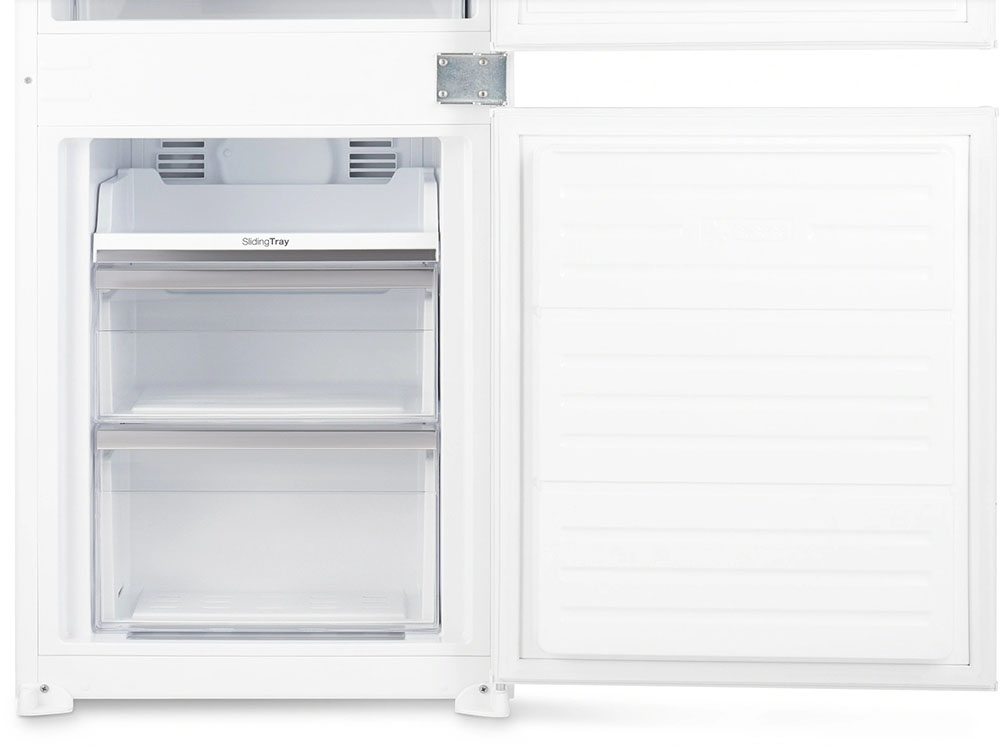 Встраиваемый прибор проще разместить в комнате, даже если общий метраж не такой уж большой. Вы можете спрятать его за декоративной панелью от мебельного фасада — советуем заранее определить нишу и заказывать панели исходя из типа крепления к двери. Способ монтажа в данной модели: жесткое крепление (система door on door) Вы можете поменять направление открывания двери, так как упор переставляемый и ее можно перевесить на другую сторону. Такая функция открывает больше возможностей для установки. Холодильник с морозильником обладает всеми опциями, которые чаще всего ищут и выбирают покупатели. Стандартная конфигурация — универсальный вариант для любой квартиры. Количество камер: 2.