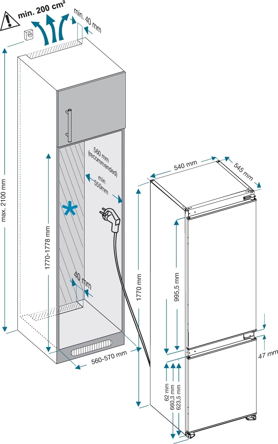 Высота холодильника — один из главных факторов, влияющих на выбор модели. Очевидно, что холодильник большей высоты будет более вместительным. Однако при выборе устройства необходимо учитывать целый ряд факторов, прежде всего высоту потолков, пищевые привычки, состав семьи, рост людей, которые будут холодильником пользоваться. Как правило, встраиваемые устройства представлены в несколько меньшем ассортименте, в том числе и по высоте.