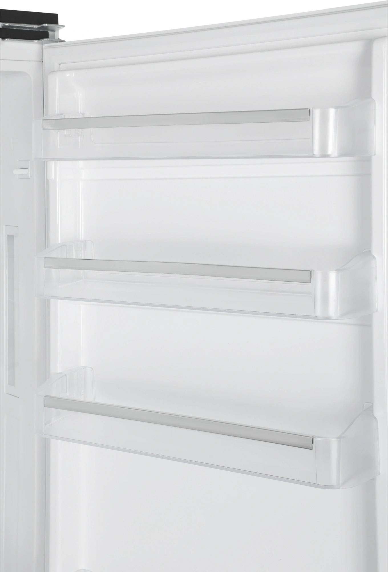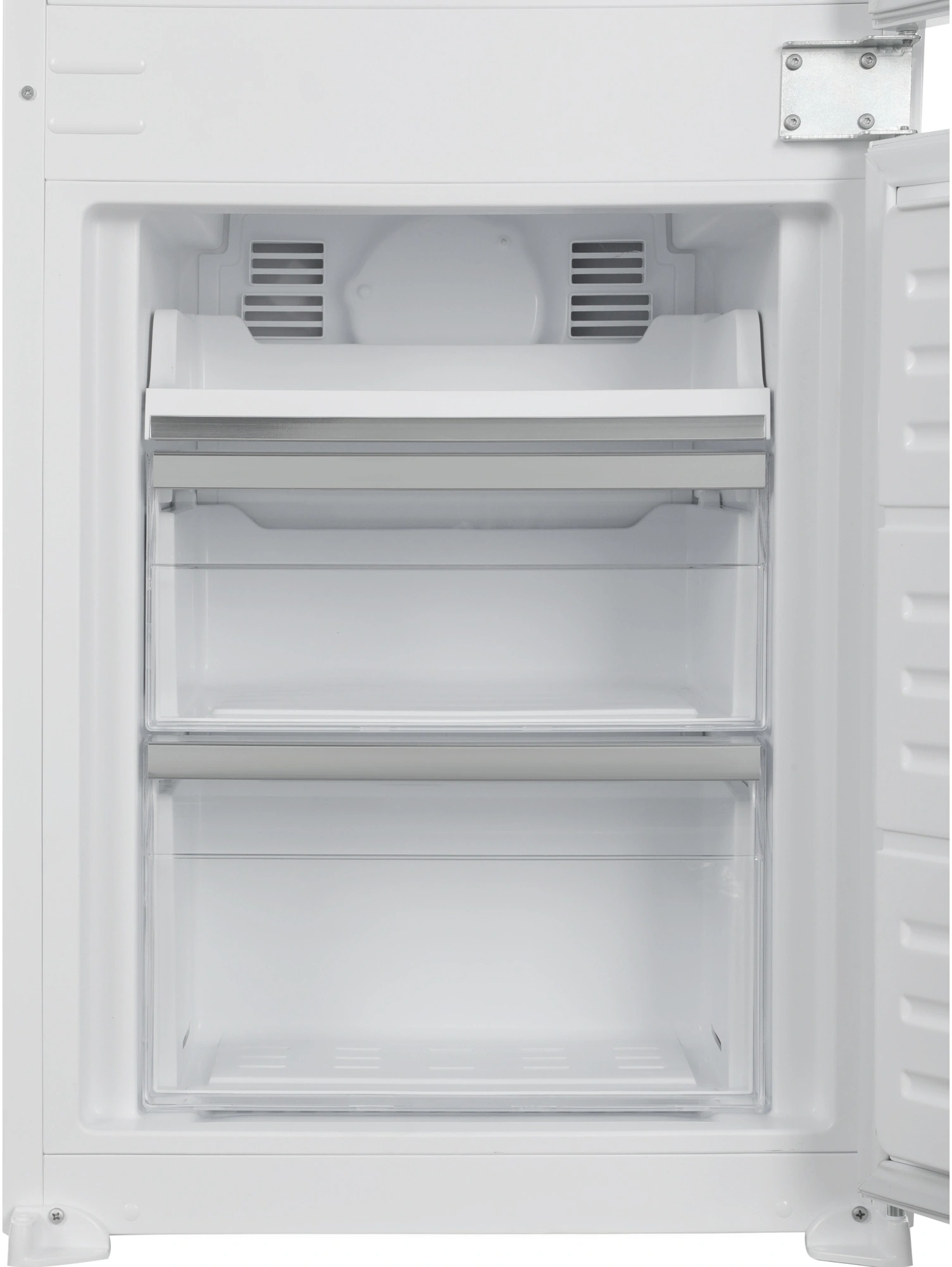 Встраиваемый прибор проще разместить в комнате, даже если общий метраж не такой уж большой. Вы можете спрятать его за декоративной панелью от мебельного фасада — советуем заранее определить нишу и заказывать панели исходя из типа крепления к двери. Холодильник с морозильником обладает всеми опциями, которые чаще всего ищут и выбирают покупатели. Стандартная конфигурация — универсальный вариант для любой квартиры. Количество камер: 2.