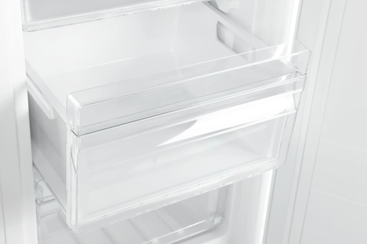 Ящики для продуктов изготавливаются либо целиком из прозрачного пластика, либо часто имеют переднюю прозрачную панель, которая обеспечивает лучший обзор. Полки в большинстве холодильников могут перемещаться по высоте, устанавливаются на специальных направляющих и без труда снимаются для очистки.