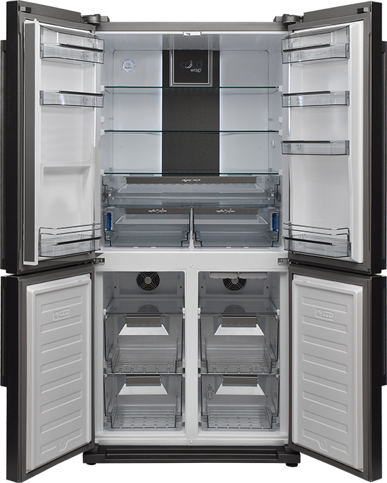 Четырех-, пяти- и шестикамерные модели включают, кроме морозильной и холодильной камер, отдельную зону свежести (иногда состоящую из сухого и влажного отсеков) и специальный отсек для ледогенератора, а в некоторых случаях еще и винное отделение.