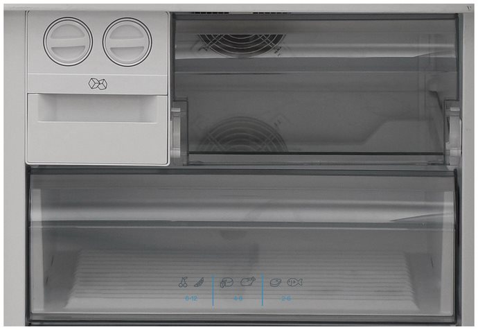 No Frost (Total No Frost, Frost Free): вентилятор обеспечивает циркуляцию охлажденного воздуха, благодаря чему лед не нарастает на стенке, а концентрируется только на скрытом внутри холодильника испарителе. Талая вода собирается в специальной емкости и испаряется. Такой холодильник не нужно размораживать – это экономит время и позволяет не останавливать прибор. Благодаря этим плюсам в современных моделях No Frost – самая распространенная система.