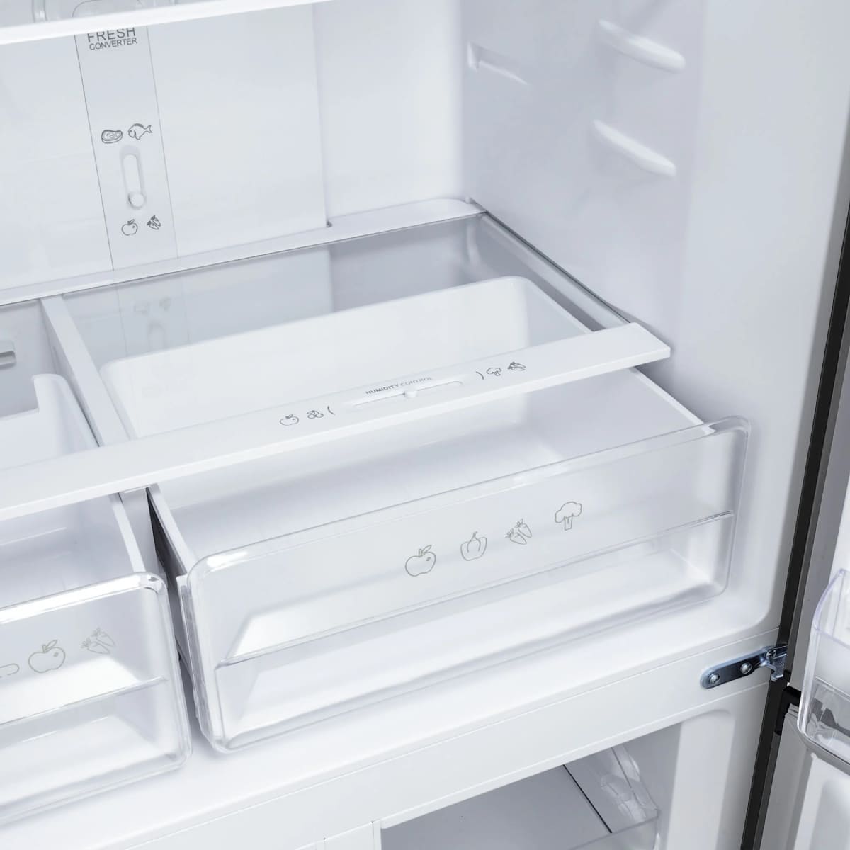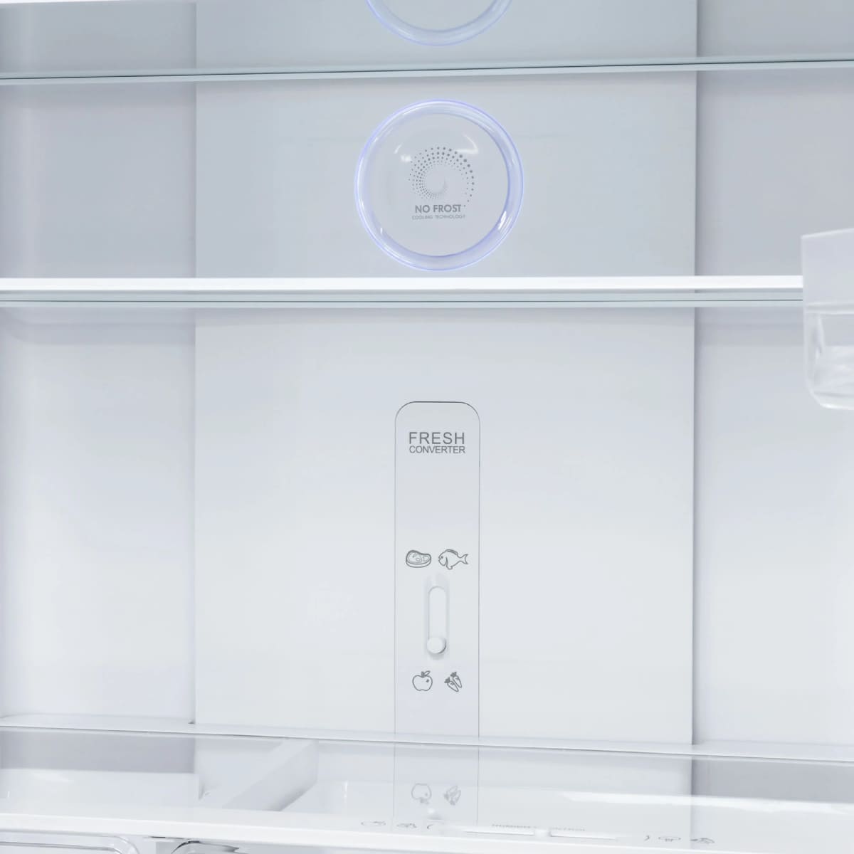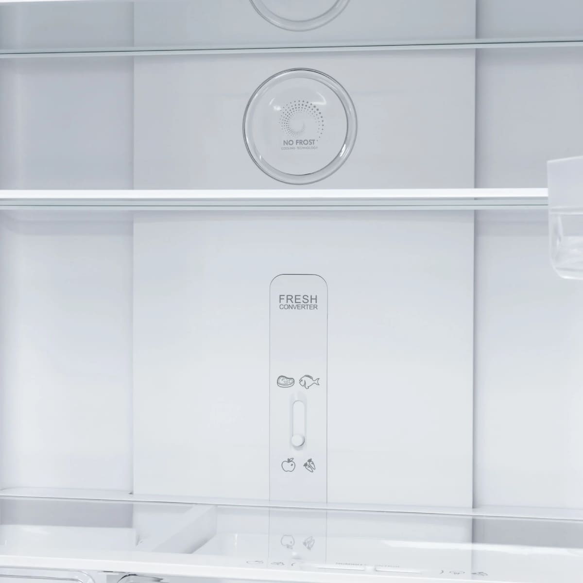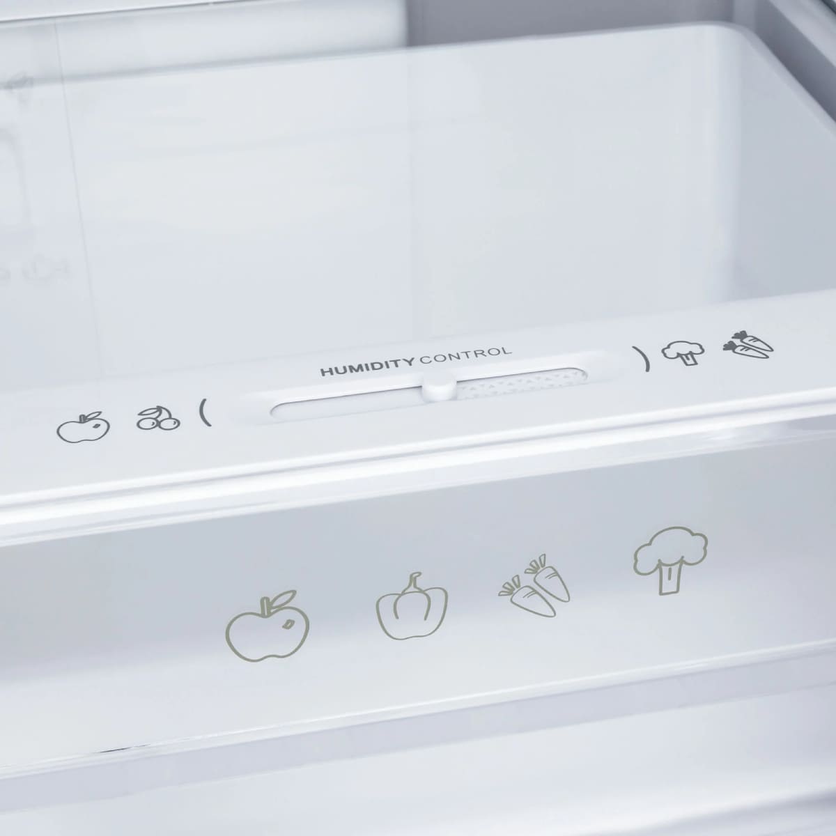 Специальная зона свежести предназначена для правильного и более длительного хранения овощей, фруктов, зелени. В ней поддерживается околонулевая температура, поэтому продукты не перемораживаются и не пересыхают. Система охлаждения этого холодильника — динамическая.