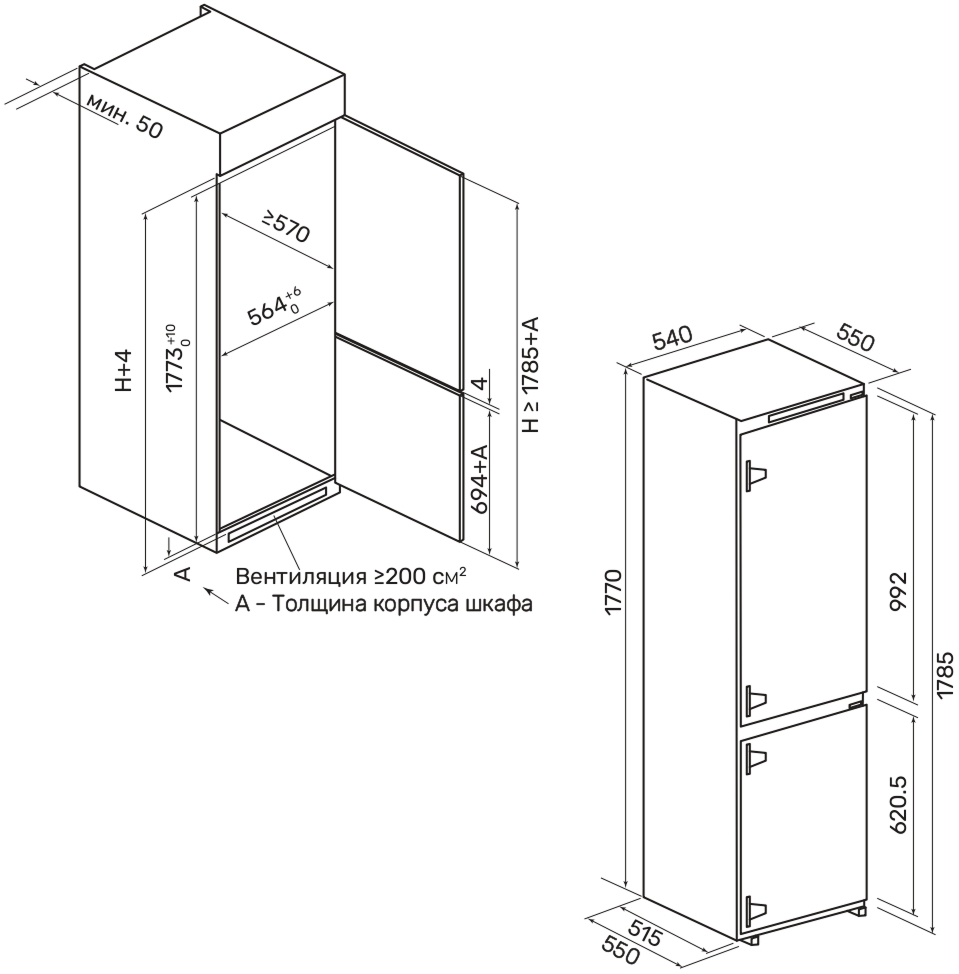 Высота холодильника — один из главных факторов, влияющих на выбор модели. Очевидно, что холодильник большей высоты будет более вместительным. Однако при выборе устройства необходимо учитывать целый ряд факторов, прежде всего высоту потолков, пищевые привычки, состав семьи, рост людей, которые будут холодильником пользоваться. Как правило, встраиваемые устройства представлены в несколько меньшем ассортименте, в том числе и по высоте.