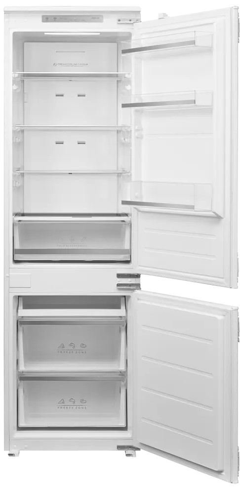Встраиваемый прибор проще разместить в комнате, даже если общий метраж не такой уж большой. Вы можете спрятать его за декоративной панелью от мебельного фасада — советуем заранее определить нишу и заказывать панели исходя из типа крепления к двери. Способ монтажа в данной модели: скользящее крепление двери (система door sliding) Вы можете поменять направление открывания двери, так как упор переставляемый и ее можно перевесить на другую сторону. Такая функция открывает больше возможностей для установки. Холодильник с морозильником обладает всеми опциями, которые чаще всего ищут и выбирают покупатели. Стандартная конфигурация — универсальный вариант для любой квартиры. Количество камер: 2.
