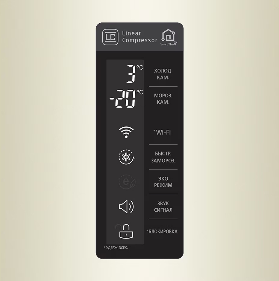Система управления холодильником позволяет самостоятельно выбирать температуру охлаждения каждой камеры, задавать дополнительные параметры, контролировать работу прибора. П