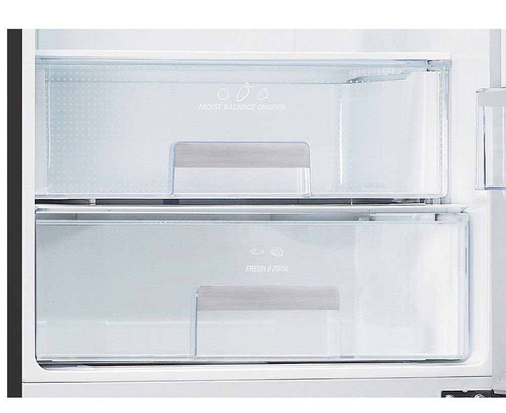Специальная зона свежести предназначена для правильного и более длительного хранения овощей, фруктов, зелени. В ней поддерживается околонулевая температура, поэтому продукты не перемораживаются и не пересыхают. Система охлаждения этого холодильника — Multi-Airflow-System.