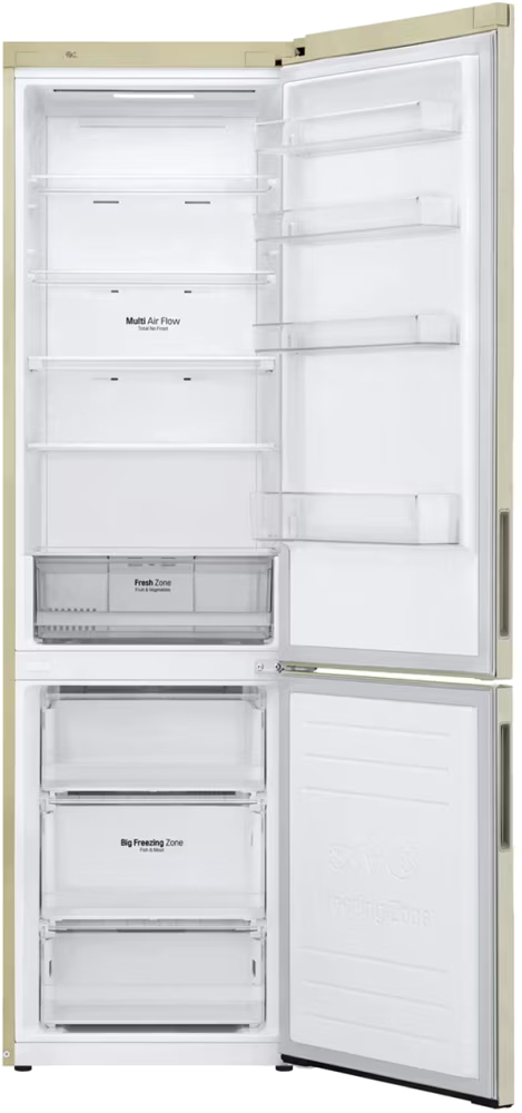 Специальная зона свежести предназначена для правильного и более длительного хранения овощей, фруктов, зелени. В ней поддерживается околонулевая температура, поэтому продукты не перемораживаются и не пересыхают. Система охлаждения этого холодильника — многопоточное охлаждение Multi-flow.