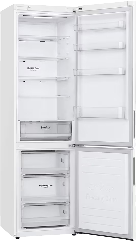 Специальная зона свежести предназначена для правильного и более длительного хранения овощей, фруктов, зелени. В ней поддерживается околонулевая температура, поэтому продукты не перемораживаются и не пересыхают. Система охлаждения этого холодильника — многопоточное охлаждение Multi-flow.