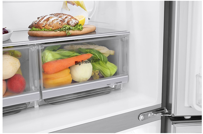 Вместительные контейнеры позволяют хранить достаточное количество овощей и фруктов. Для более длительного хранения и поддержания свежести овощей и фруктов разработаны специальные системы хранения. Среди них, например, зона свежести с увеличенной влажностью до 85% и температурой около 0 градусов. Это герметично закрывающийся ящик, часто на выдвижных роликах или направляющих, в котором имеется специальное задвижка, позволяющая регулировать влажность. Как известно, при более высокой влажности продукты с большим содержанием воды дольше остаются свежими.
