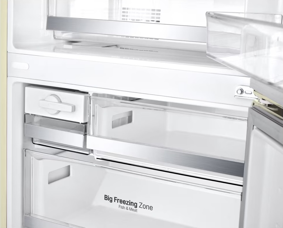 Специальная зона свежести предназначена для правильного и более длительного хранения овощей, фруктов, зелени. В ней поддерживается околонулевая температура, поэтому продукты не перемораживаются и не пересыхают. Система охлаждения этого холодильника — Multi-Airflow-System.