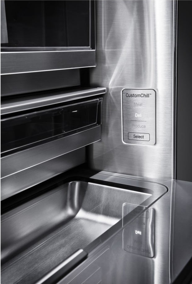 Подобная наружная «дверь в двери» может быть сплошной или прозрачной. В случае, если в дверцу вставлено стекло, его делают энергосберегающим или затемненным, причем особый датчик позволяет при двойном стуке в дверцу включать внутреннее освещение этого небольшого отделения. Подобная технология не только способствует сохранению качества продуктов, но и позволяет сэкономить электроэнергию.