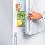 В холодильной камере для этого используются дополнительные навесные аксессуары — например, полки и балконы различной высоты на дверце. В самой камере стеклянные полки можно перемещать по высоте, а снизу к любой полке можно подвешивать дополнительные решетчатые держатели для бутылок или пластиковые выдвижные контейнеры для хранения яиц или мелких упаковок. Ящики для овощей и фруктов могут быть разделены на отдельные зоны с помощью встроенного ограничителя.