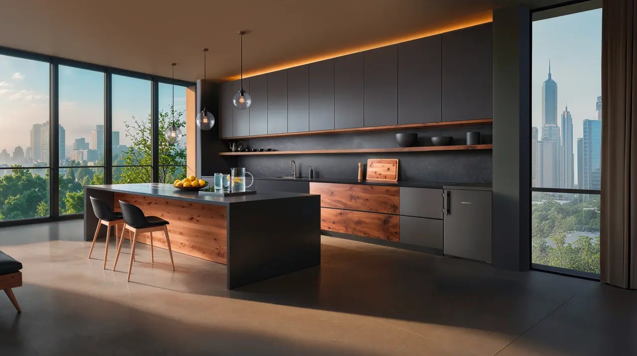 Последнее время достаточно широкое распространение получили холодильники черного цвета. Подобные устройства придают кухне особый стиль, однако не рекомендуется устанавливать их в небольшом помещении, особенно если фасад изготовлен не из стекла. Кроме того, черные холодильники требуют постоянного тщательного ухода, так как на них лучше заметны загрязнения.