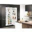 Жесткое крепление мебельного фасада по системе door on door позволяет широко открывать дверцу на угол 115°. Холодильное отделение объемом 245 литров оснащено восемью полками из ударопрочного стекла, которые можно отрегулировать по высоте. Четыре полки на дверце изготовлены из стекла с полосой из высококачественной стали и служат для размещения бутылок и консервов. Два контейнера VarioBox с крышками легко извлекаются и могут использоваться отдельно. Съемные контейнеры VarioSafe и система хранения Liebherr FlexSystem предназначаются для хранения небольших продуктов и упаковок и гарантируют самый удобный доступ к содержимому холодильной камеры. Режим суперохлаждения SuperCool позволяет снизить температуру в камере перед загрузкой свежих продуктов. Внутреннее наполнение зоны свежести BioFresh состоит из стеклянных полок, контейнера Dry Safe с пониженной влажностью для хранения мясных и молочных продуктов и двух отделений HydroSafe с повышенной влажностью для хранения овощей, фруктов, зелени. Все ящики удобно выдвигаются на телескопических направляющих SoftTelescopic. Высокий класс энергопотребления А+++ гарантирует экономичность прибора.