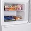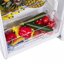 В холодильной камере с ярким внутренним освещением для хранения продуктов предусмотрены три полки из закаленного стекла с металлической окантовкой, регулируемые по высоте. На дверце имеются три полки и контейнер для яиц, а в нижней части камеры находится вместительный выдвижной ящик для хранения фруктов и овощей. В морозильной камере находятся две полки из прозрачного экологически безопасного пластика и форма для получения кубиков льда. Производительность замораживания составляет 2 кг продуктов в сутки. Механическая панель управления с поворотным переключателем поможет выбрать один из семи температурных режимов. Конденсаторная решетка закрытого типа на задней стенка позволяет устанавливать холодильник вплотную к стене.