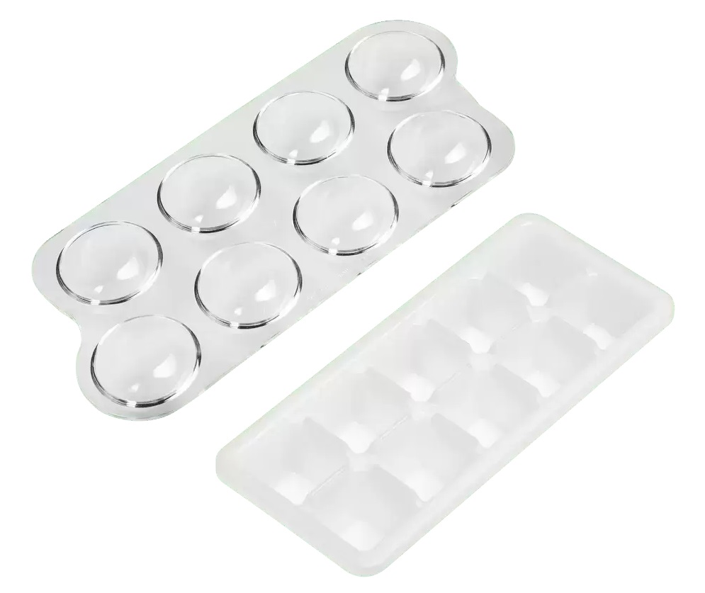 Лоток для приготовления кубиков льда имеется во всех морозильных камерах. В простейшем случае он представляет собой пластиковый контейнер, разделенный на квадратные ячейки и служащий для получения классических кубиков.