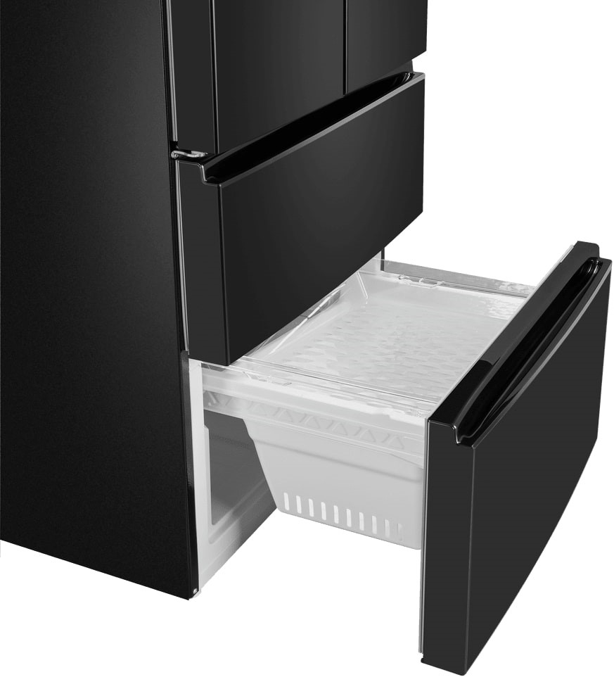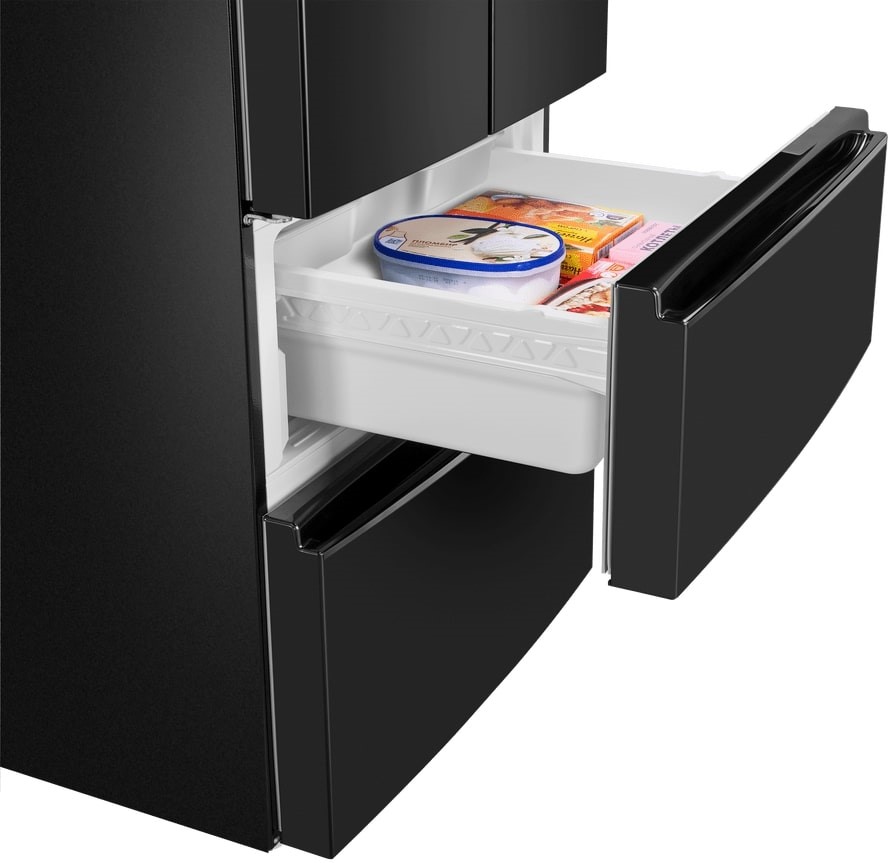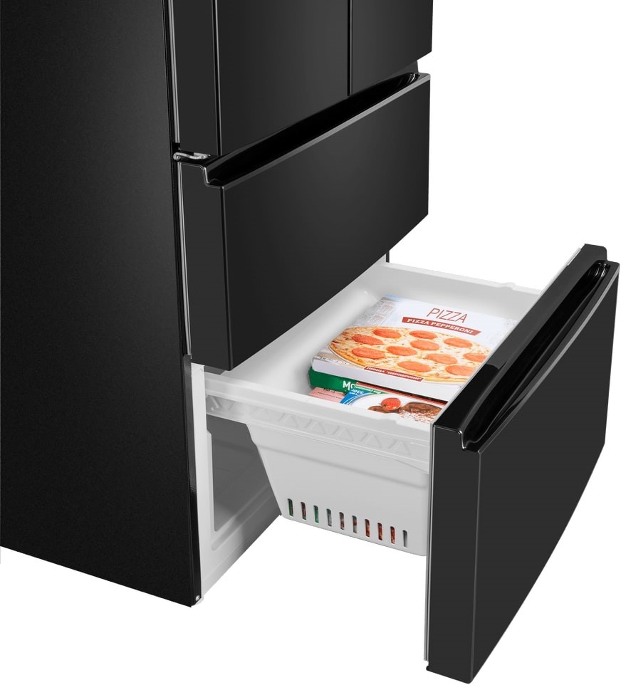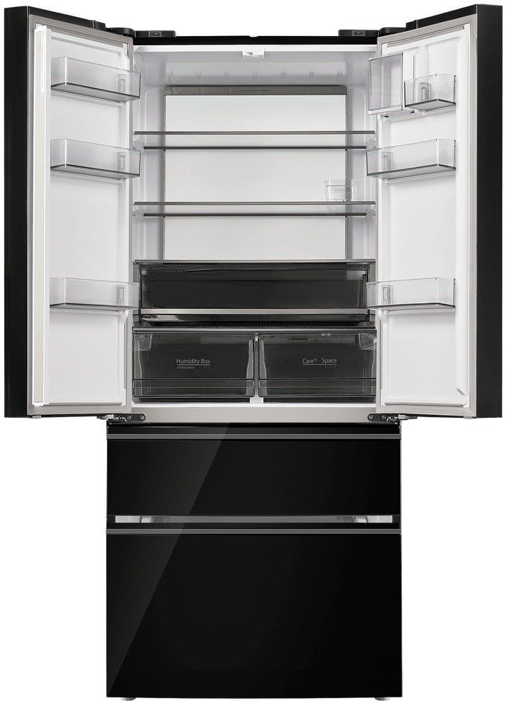 Холодильники с так называемой французской дверью или French Door также имеют распашные двери, но за ними находится не две, а одна камера. Эти двери занимают не всю высоту холодильника, а только ее часть. В нижней части подобных холодильников могут находиться либо еще две распашные двери, либо выдвижные морозильные ящики.