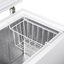 Внутренняя камера морозильного ларя, как правило, не содержит полок, ящиков и других подобных разделителей — это большой цельный отсек, в котором сверху могут крепиться металлические сетчатые корзины. Такая конструкция позволяет максимально увеличить вместительность устройства.