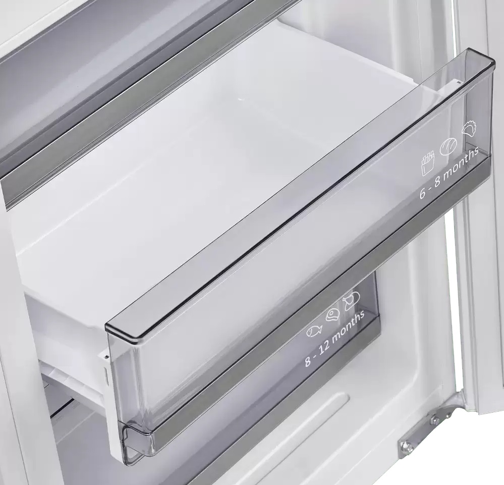 Встраиваемый прибор проще разместить в комнате, даже если общий метраж не такой уж большой. Вы можете спрятать его за декоративной панелью от мебельного фасада — советуем заранее определить нишу и заказывать панели исходя из типа крепления к двери. Способ монтажа в данной модели: скользящее крепление двери (система door sliding) Вы можете поменять направление открывания двери, так как упор переставляемый и ее можно перевесить на другую сторону. Такая функция открывает больше возможностей для установки. Холодильник с морозильником обладает всеми опциями, которые чаще всего ищут и выбирают покупатели. Стандартная конфигурация — универсальный вариант для любой квартиры. Количество камер: 2.