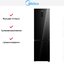Холодильник Midea MDRB521MGE22ODM выполнен в формате отдельно стоящей двухдверной модели с нижней морозильной камерой, высота корпуса — 201 см, а габариты 201×59.5×66 см. Черное стекло на фасаде придает устройству строгий и современный вид, который легко впишется в интерьер кухни. Общий полезный объем достигает 360 литров, из которых 256 литров отведено под холодильную камеру и 104 литра — под морозильник. Практичная конфигурация дверей и возможность перевешивания петель дают свободу при установке в разных планировках.