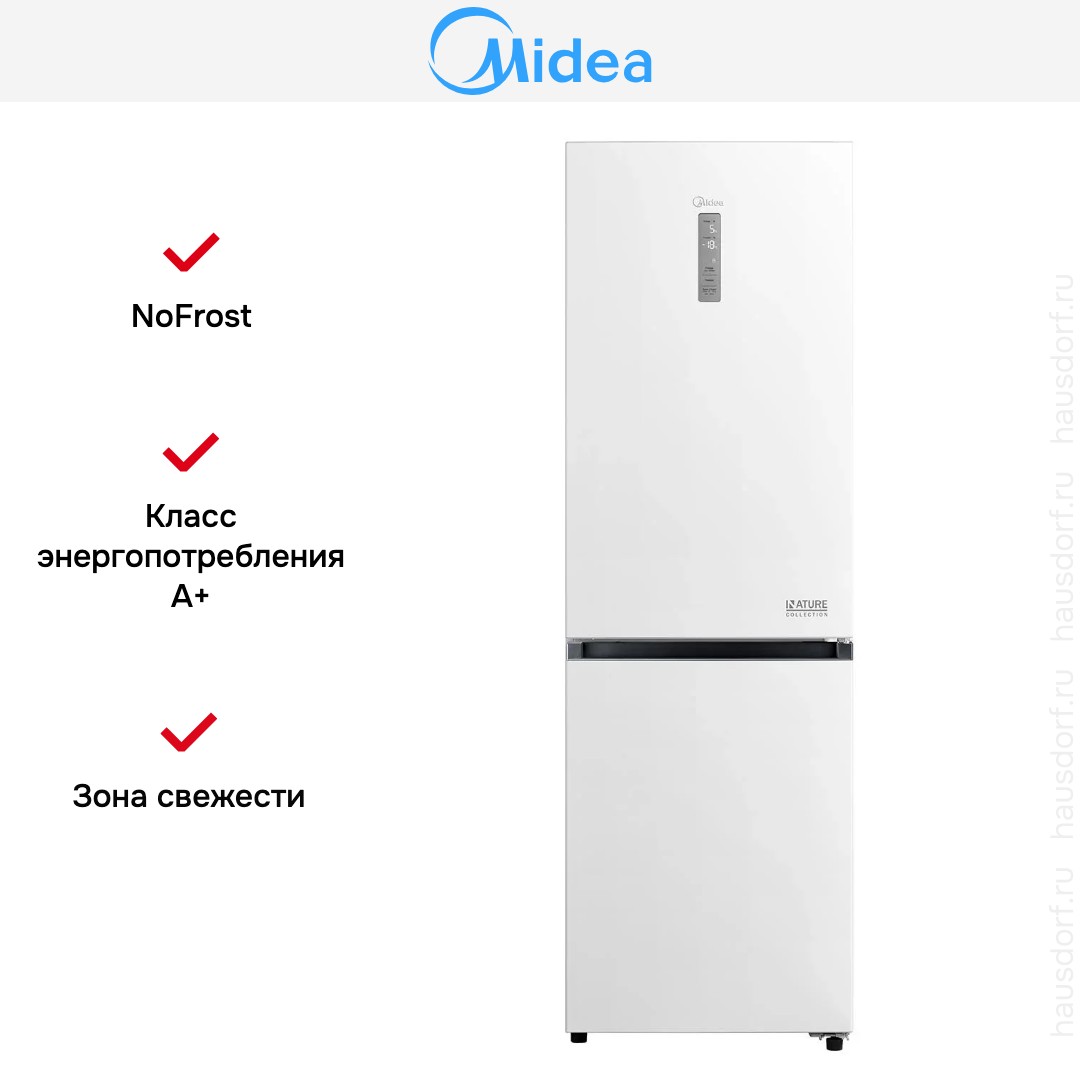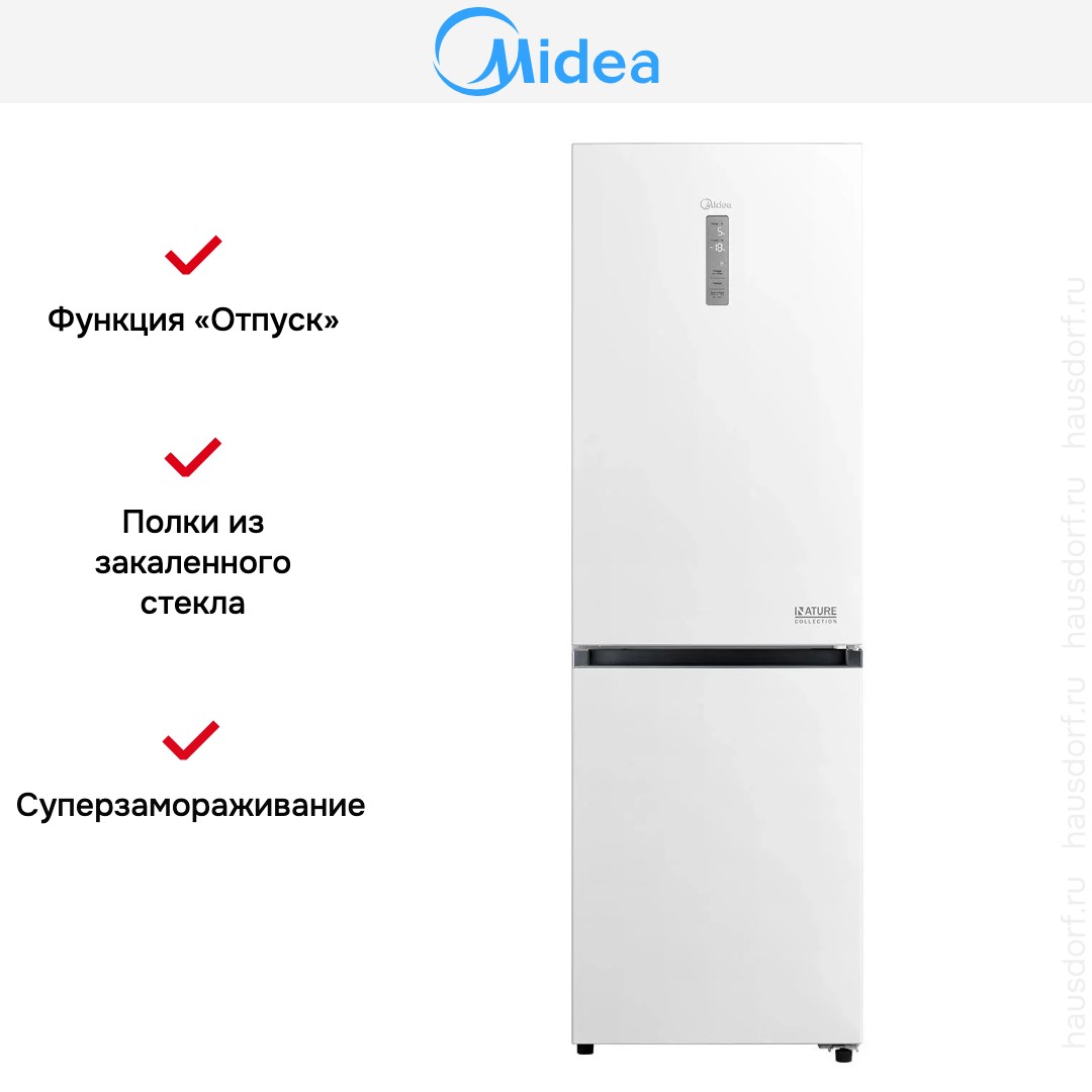 Холодильник Midea MDRB471MGF01O — отдельно стоящая двухкамерная модель с нижней морозильной камерой, выполненная в спокойном белом цвете и лаконичном корпусе. Его габариты 185×59.5×66 см позволяют удобно расположить прибор в стандартной кухонной зоне, при этом дверной упор с правой стороны обеспечивает классическую расстановку мебели. Общий объем 360 л и полезный 346 л дают достаточно места для семьи: холодильная камера вмещает 223 л, а морозильная — 123 л, что удобно для ежедневных продуктов и запасов на длительное хранение.