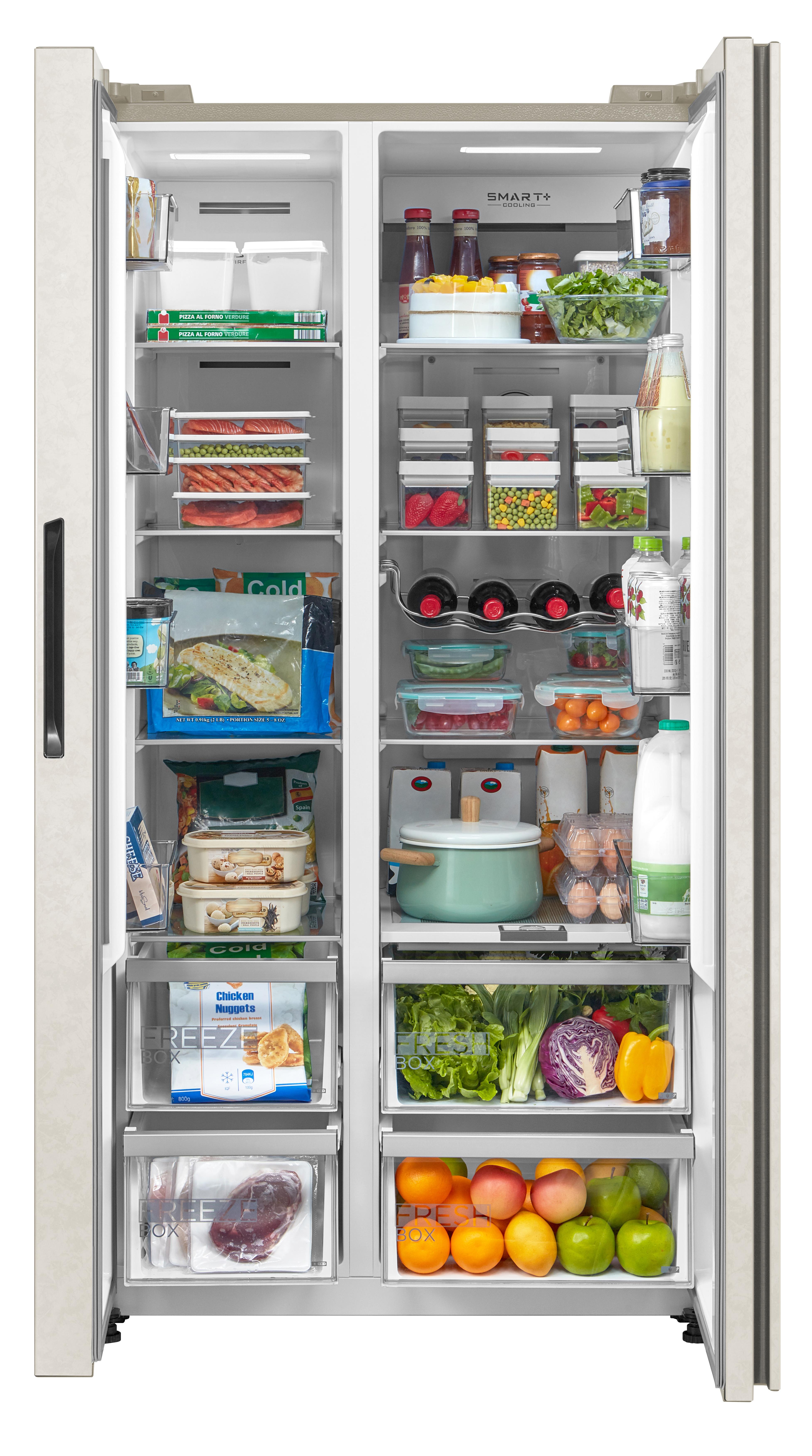 Холодильники Side-by-Side, что в переводе означает «бок-о-бок», — вместительные устройства, в которых холодильная и морозильная камеры располагаются рядом друг с другом. Они предназначаются для хранения значительного запаса продуктов и иногда называются холодильниками с американским типом компоновки, поскольку такие приборы с распашными дверями появились именно в США.