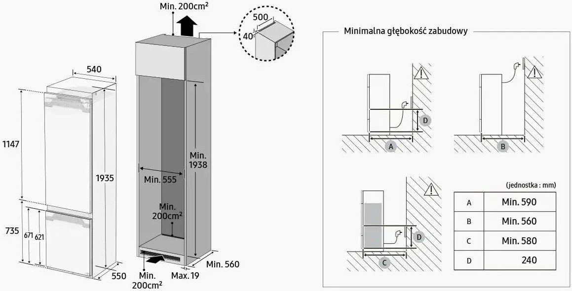 Мини-холодильники, которые могут быть установлены в тумбу или под столешницу, отличаются несколько меньшей шириной от 50 см. Такую же небольшую ширину имеют встраиваемые модели, что связано со способом их установки.
