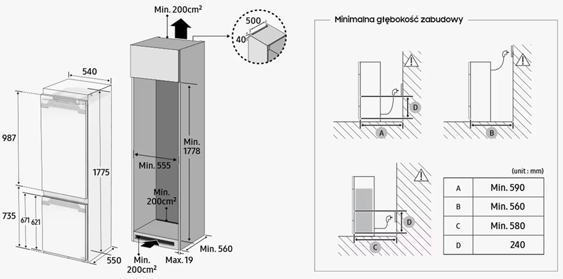 Глубиной холодильника называется расстояние от его фронтальной части до задней стенки. Известно, что при установке холодильника к стене между его задней стенкой и поверхностью должно оставаться расстояние около 8-10 см, необходимое для нормальной вентиляции. С этим также связаны ограничения на глубину этих устройств.